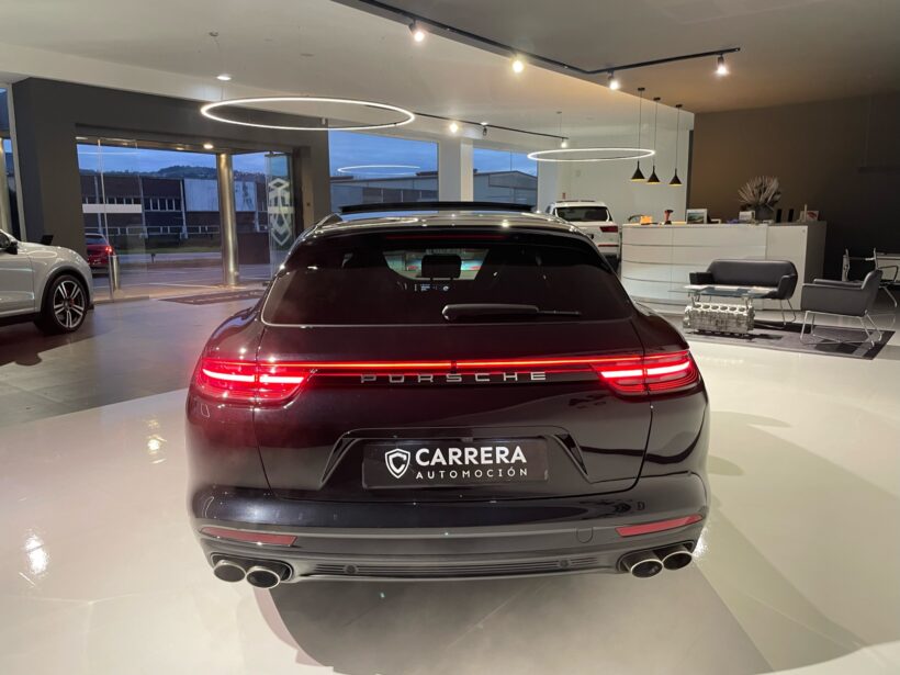 | Exterior | Sistema de escape deportivo con salidas en acero, Techo panorámico, Cristales privacidad, Molduras de ventanillas en plata brillante, Llanta Exclusive Design en 21, Llantas Panamera S 19, Espejos retrovisores Sport Design , Rejillas de aire pintadas en negro brillo, |