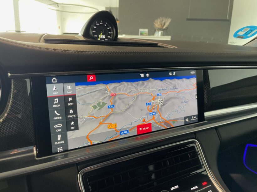| Interior | Apple CarPlay, Asientos 18 posiciones con memoria, Asientos delanteros y traseros calefactables, Asientos traseros regulables, Distronic, Equipo de sonido Burmester, Frenos cerámicos, Inserciones en carbono, Pantallas traseras originales Porsche, Paquete de iluminación, Sport Chrono |